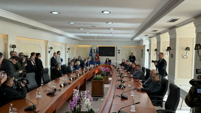 Tashmë ka filluar edhe takimi i Presidentes me liderët e partive politike, e ku aty është edhe kryetari i LVV-së, Albin Kurti, partia e të cilit doli fituese e zgjedhjeve të 9 shkurtit, por jo aq sa ta formojë Qeverinë e re.