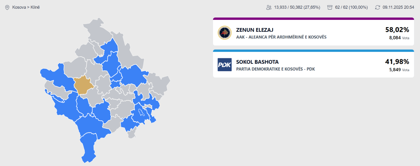 Pas përmbylljes së rezultateve nga KQZ për këtë komunë, Elezaj ka marrë 58.02%.