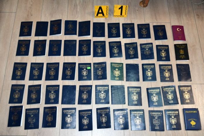 Lidhur me rastin është realizuar kontrolli tek personi i dyshuar ku janë gjetur dhe konfiskuar gjithsej 53 (pesëdhjetë e tre) pasaporta të shtetasve jordanezë, vijon njoftimi.