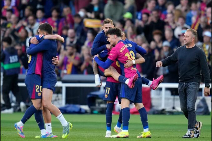 Megjithatë ekipi i drejtuar nga gjermani Flick ka treguar shumë herë se jo vetëm është një ekip spetakolar, por edhe një ekip plot karakter që nuk dorëzohet asnjëherë dhe këtë gjë katalanasit e provuan sërish, teksa brenda 4 minutash lojë barazuan shifrat falë golave të Olmos dhe Raphinas.