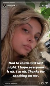 “Mbrëmë më duhej të flija në ndonjë divan. Shpresoj që të gjithë të jenë mirë. Unë jam mirë. Faleminderit që u interesuat për mua”, shkroi ajo në një tjetër postim.