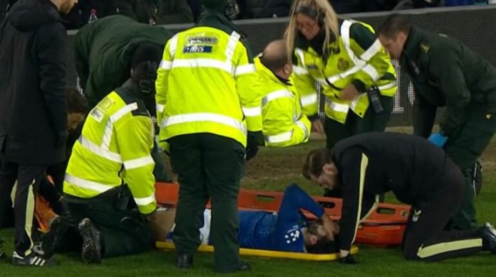 Situata këtë herë dukej e rendë pasi sulmuesi kuqezi doli nga fusha mes lotësh, në barelë dhe me maskë oksigjeni.