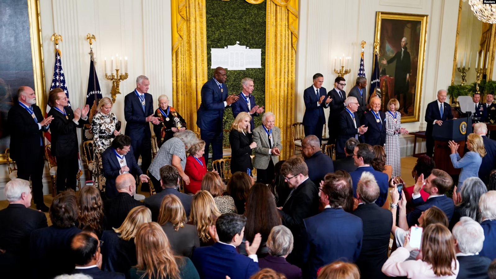 Një vit më parë, Presidenti Biden dha Medaljen Presidenciale të Lirisë për 19 persona: për aktivistin për të drejtat civile Medgar Evers (pas vdekjes); për ish-kryetaren e Dhomës së Përfaqësuesve, Nancy Pelosi; ligjvënësin James Clyburn, nga Karolina e Jugut dhe aktoren Michelle Yeoh. /VOA