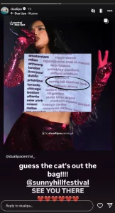 “Shihemi në Sunny Hill Festival”, ka shkruar ndër të tjerash bukuroshja 29-vjeçare.