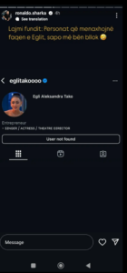 E në vazhdën e zhvillimeve gazetari Ronaldo Sharka, ka njoftuar se personat që menaxhojnë instagramin e Eglit, i kanë bërë bllok.