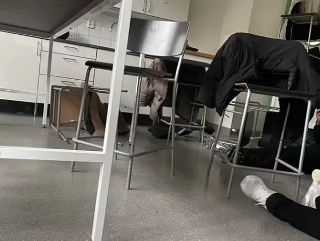 Ndërkohë, një imazh i publikuar nga mediat suedeze tregon një person të shtrirë në dyshemenë e një klase, pranë karrigeve të përmbysura, të cilat ishin përdorur për të barrikaduar derën e klasës.