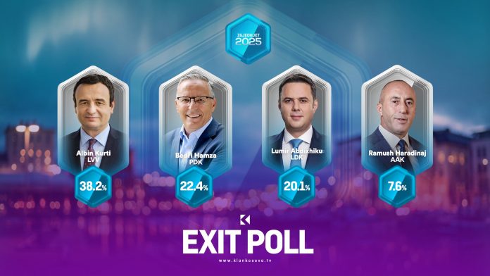 Exit-polli i Klan Kosovës e ka nxjerrë LVV-në të parën, por me rënie të madhe të votave nga zgjedhjet e 2021 – me 38.2 %.