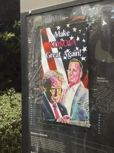 Posteri që mban mbishkrimin: “Make Kosova great again”, nuk dihet se nga kush janë vendosur.