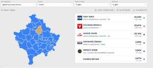 Në Vushtrri, KQZ njofton se atje është duke prirë Ferit Idrizi nga Partia Demokratike e Kosovës me 46,36% -p 6,942 Vota.