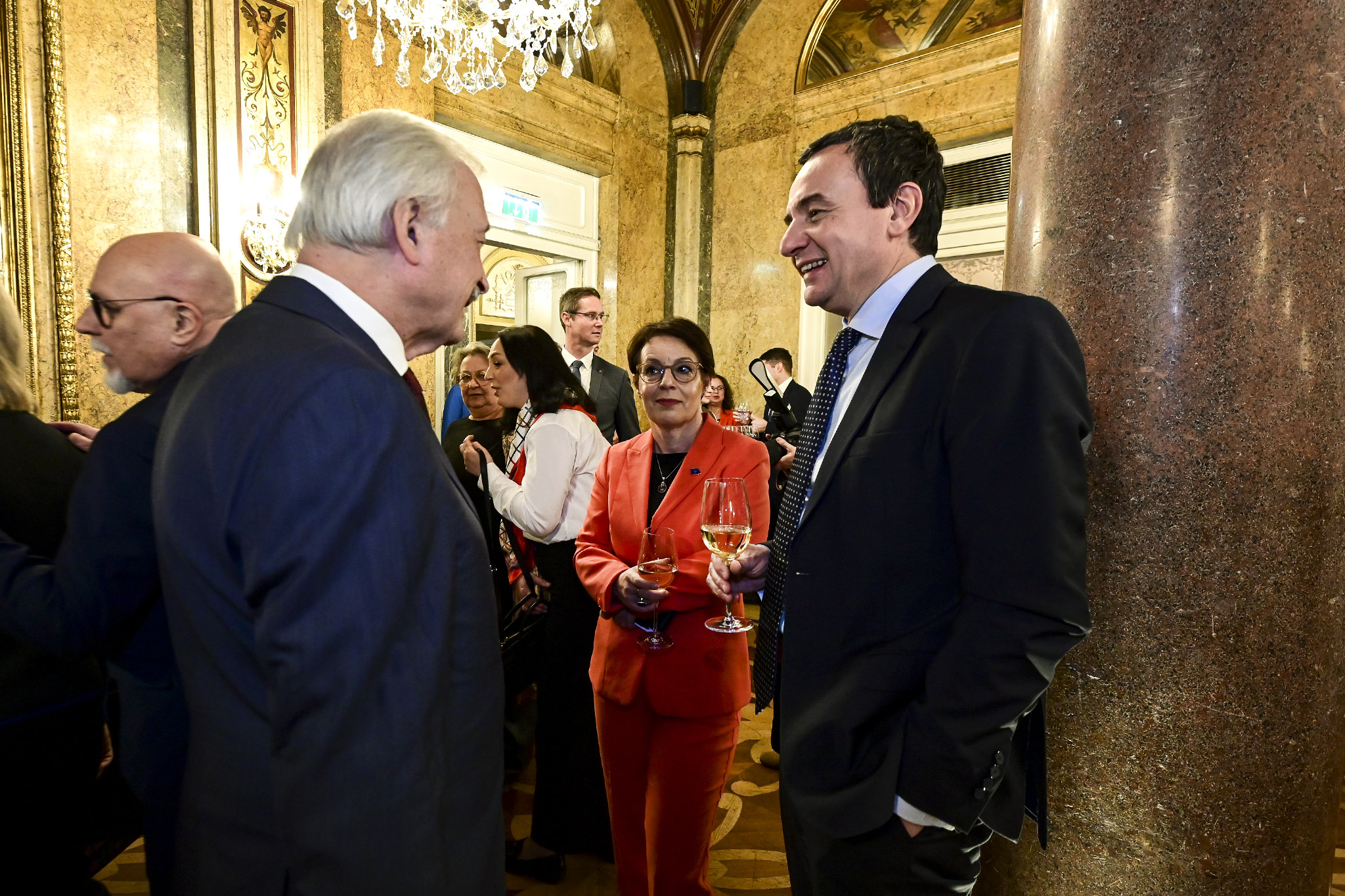 Kryeministri i Kosovës, Albin Kurti, dhe zëvendëskryeministrja dhe ministrja e Punëve të Jashtme dhe Diasporës, Donika Gërvalla-Schwarz morën pjesë mbrëmë në pritjen mirëseardhëse që i paraprinë Forumit Ekonomik të Vjenës, i cili mbahet sot.