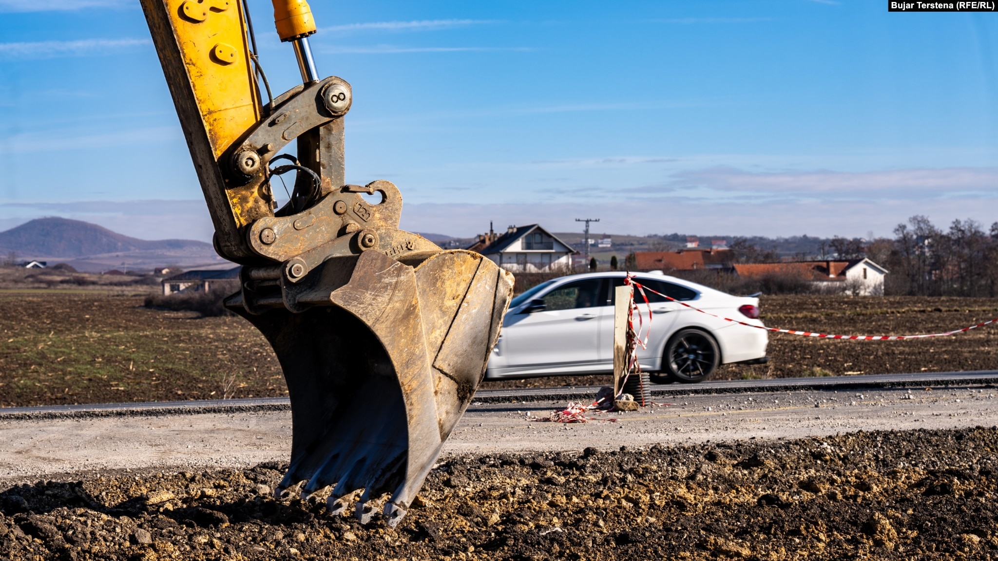 Një ekskavator në magjistralen Prishtinë-Pejë.