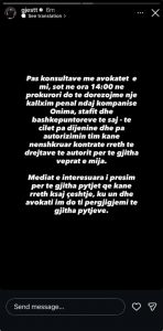 Kallëzimi penal është hartuar në konsultim të ngushtë me avokatët e artistit, Artan Çerkini dhe Burim Azemi, të cilët do të ndjekin procedurat ligjore në organet e drejtësisë.