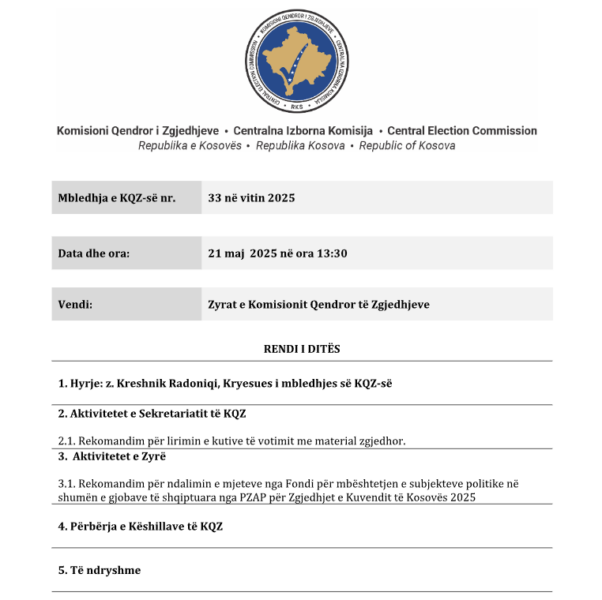 Komisioni Qendror i Zgjedhjeve do të mbajë sot mbledhjen e radhës, ku në rend të ditës janë dy pika me rëndësi.
