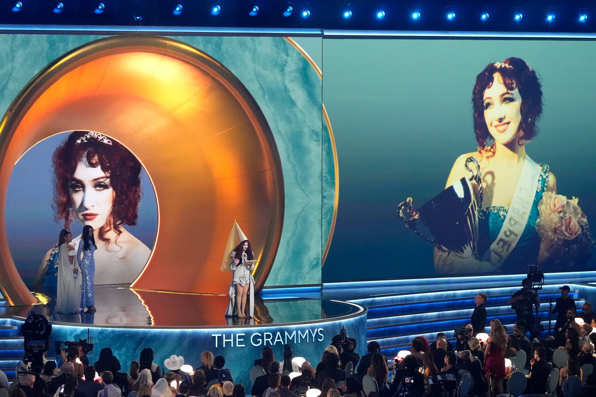 Chappell Roan pranoi artistin e ri më të mirë me një fjalim rreth nevojës që artistët në zhvillim të kenë akses në kujdesin shëndetësor të përballueshëm.Kredia…Chris Pizzello/Invision, nëpërmjet Associated Press