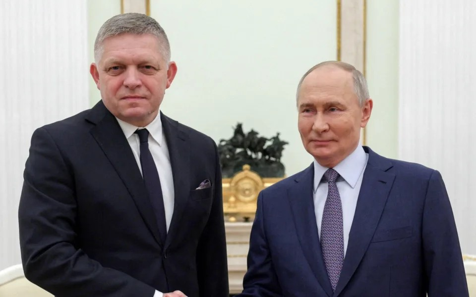 Kryeministri sllovak Robert Fico (majtas) ka kërkuar kompensim nga Kievi dhe paralajmëroi se mund të ndërpresë eksportet e elektricitetit në Ukrainë – Gavriil Grigorov/nëpërmjet REUTERS