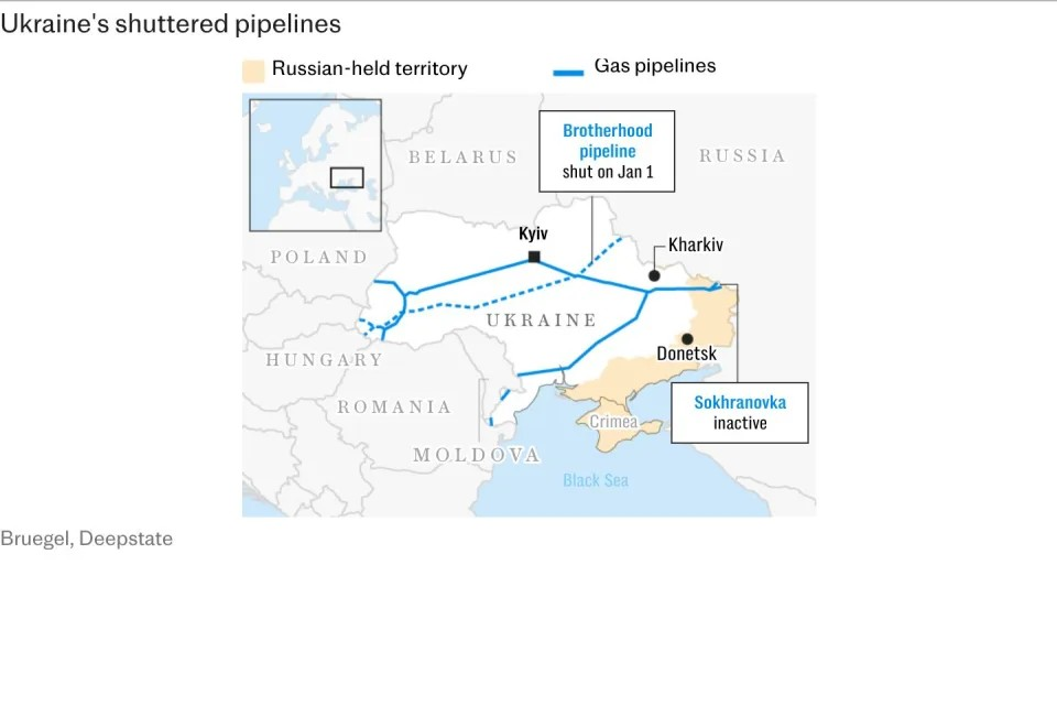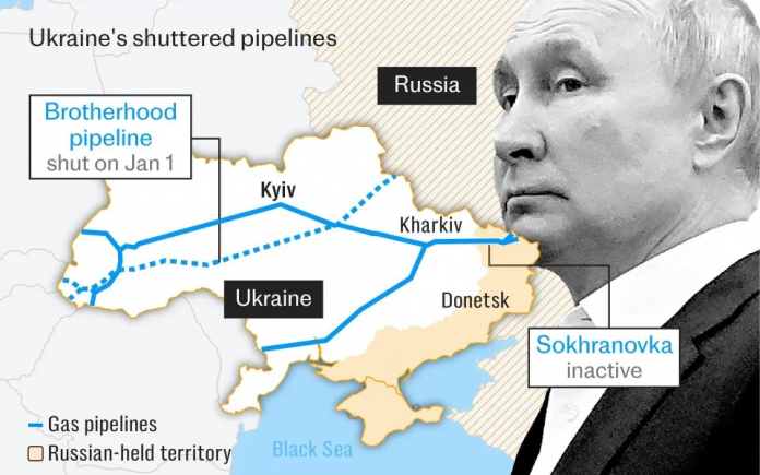 Me skadimin e një marrëveshjeje për të përdorur tubacionin Urengoy–Pomary–Uzhhorod për tranzit, makineria e luftës e Vladimir Putinit pësoi një goditje që do t’i kushtojë miliarda euro në vit. Por kjo gjithashtu krijon sfida të reja furnizimi për disa vende europiane që mbeten të varura nga Kremlini, duke rritur çmimet e gazit në të gjithë kontinentin – përfshirë Britaninë.