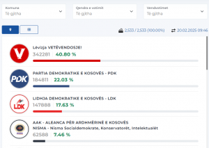HomeKosovaZgjedhjet 2025KQZ publikon rezultatet e partive politike, procesohen 100 % e vendvotimeve