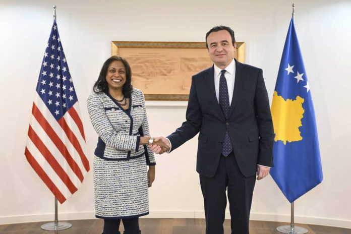 Kryeministri i Kosovës, Albin Kurti, mirëpriti në zyrën e tij të Ngarkuarën me Punë të Ambasadës së Shteteve të Bashkuara të Amerikës në Kosovë, Anu Prattipati.
