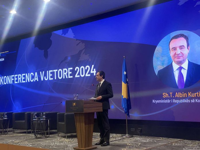 “Ne jemi nisur nga parimet për qeverisje të mirë dhe vizionin që nënkupton qëndrueshmëri, mirëqenie, siguri dhe barazi. Së bashku me ju me punën dhe investimet tuaja, ne po e fuqizojmë ekonominë e vendit. E ardhshmja do të jetë më e qëndrueshme dhe më e begatë për të gjithë. Kemi dyfishim të eksporteve dhe përmirësim të ndjeshëm të raportit eksport-import. Kemi dyfishim të investimeve të huaja direkte. Mesatarja e investimeve të huaja për vitet 2021-2023 ishte 664.3 milionë euro. Në përgjithësi ekonomia e Kosovës është rritur dhe ky vit do të hyjë në historinë ekonomike si vit që kemi mbërritur 10 miliardshin e ekonomisë tonë. Sivjet krahasuar me vitin 2021 kemi një rritje të ekonomisë për rreth 30%”, deklaroi ai.