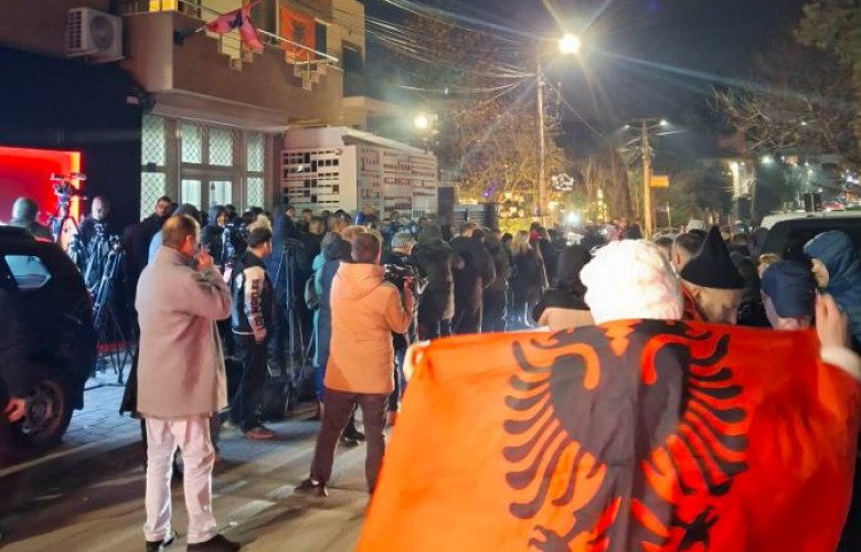 Simpatizantë të shumtë janë mbledhë para selisë së Lëvizjes Vetëvendosje (LVV) në Prishtinë.