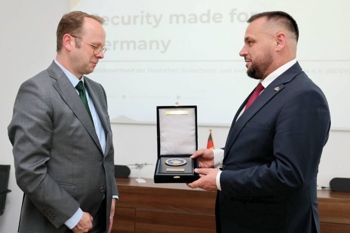 Në kuadër të vizitës zyrtare në Republikën Federale të Gjermanisë, ministri i Mbrojtjes i Kosovës, Ejup Maqedonci, ka zhvilluar një takim me drejtorin menaxhues të Shoqatës Federale të Industrisë së Sigurisë dhe Mbrojtjes së Gjermanisë, Roland Haag, me të cilin ka diskutuar për bashkëpunimin ndërshtetëror.