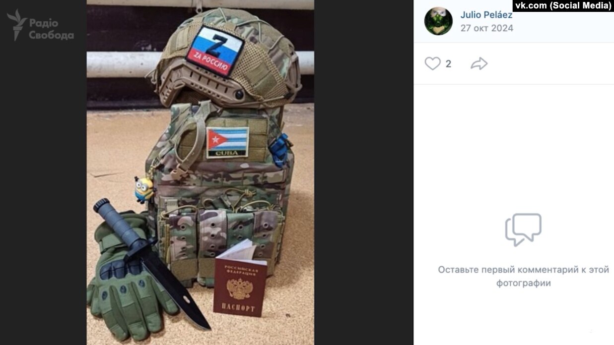 Në fund të tetorit, sipas profilit të tij, Pelaez ishte në Rusi dhe kishte postuar një fotografi të pajisjeve të tij ushtarake me simbolin “Z” pro luftës, një copëz me flamurin kuban dhe një dokument që i ngjan një pasaporte ruse.