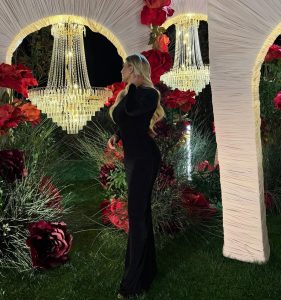 Ajo ka publikuar disa fotografi ku shfaqet e veshur me një fustan të zi elegant, i cili thekson linjat e trupit të saj,