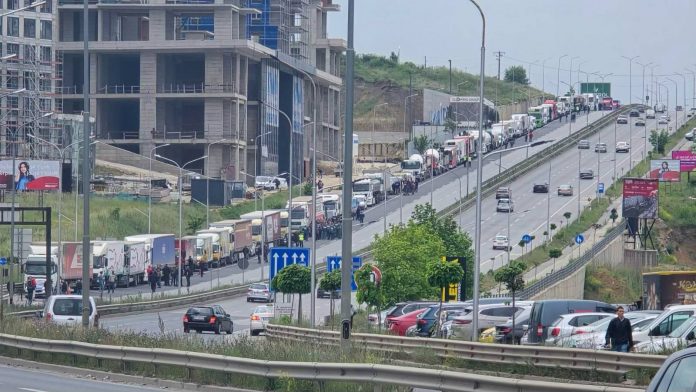 Protesta ka nisur në orën 10:00, ku përfaqësues të bizneseve kanë vendosur kamionët e tyre në hyrjet kryesore të kryeqytetit.