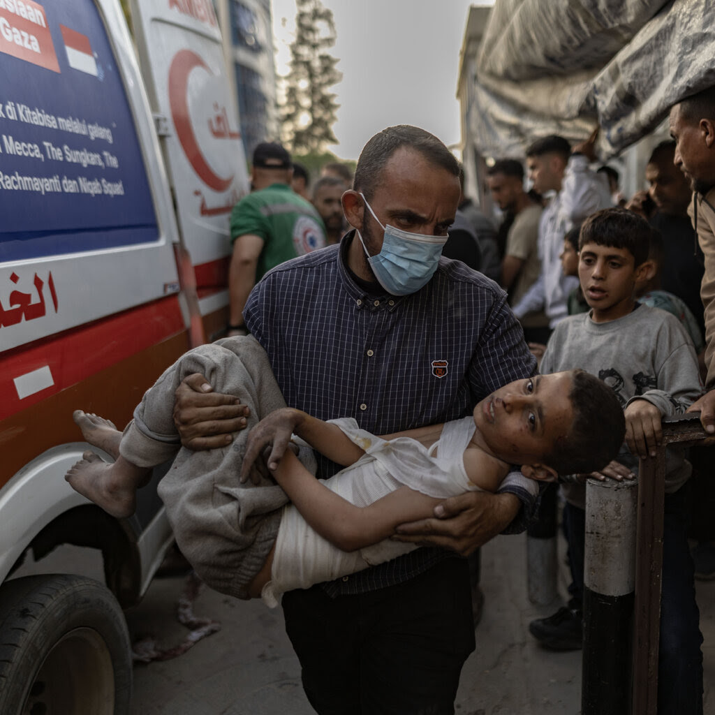 Një djalë u plagos në një sulm në një shkollë të kthyer në strehë në qytetin e Gazës. Saher Alghorra për The New York Times