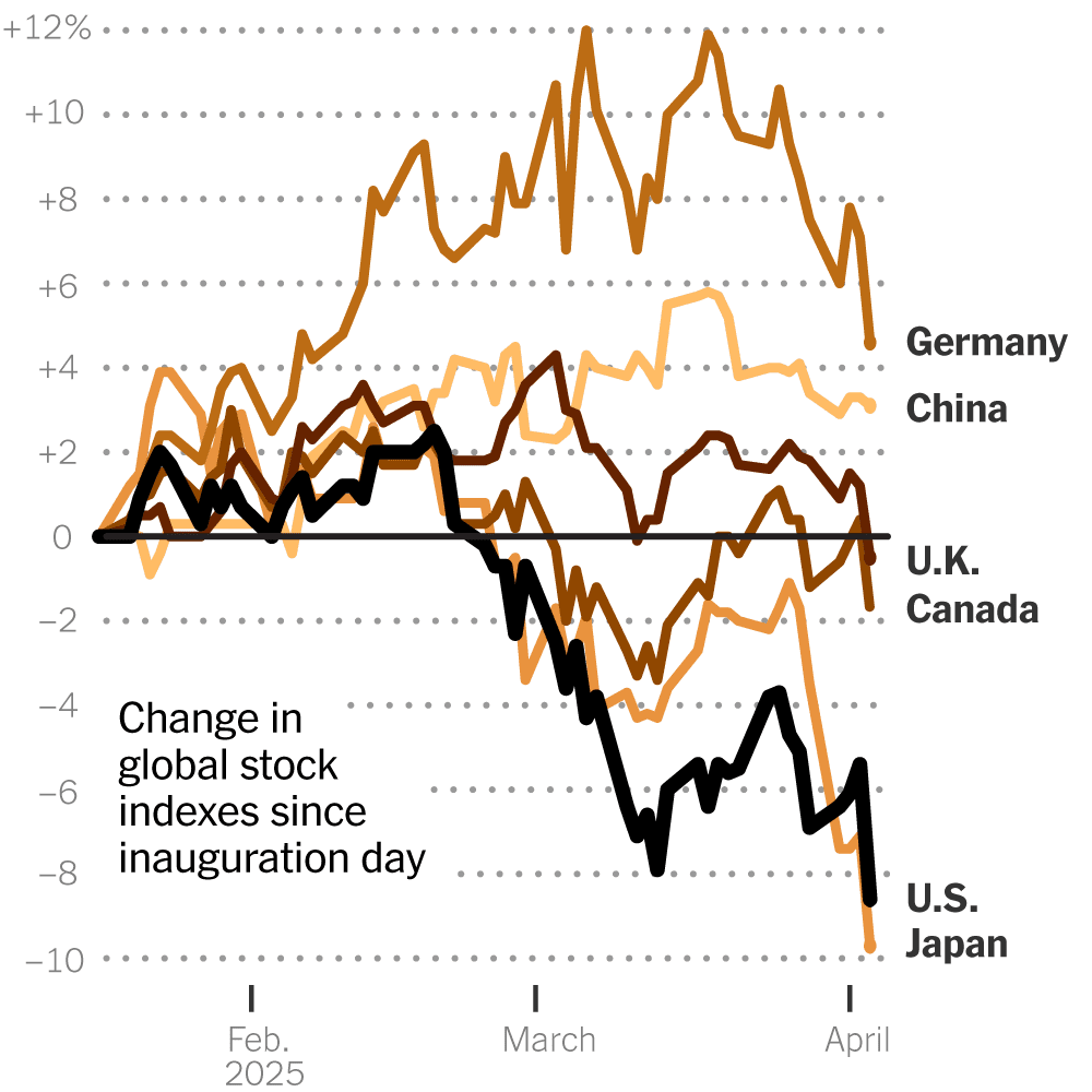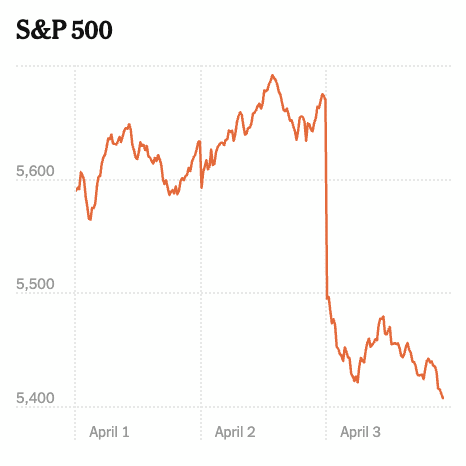 Indeksi S&P 500 ra me 4.8% — rënia më e madhe që nga qershori i vitit 2020, në kulmin e pandemisë. Rënia sugjeron se shkalla e tarifave i kishte befasuar tregjet. Apple udhëhoqi shitjet në sektorin e teknologjisë me një rënie prej rreth 9%.