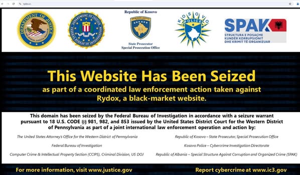 “Këto dy raste (RYDOX dhe BlackDB) janë hetuar në bashkëpunim me autoritetet e ShBA-së (Prokurorinë dhe Byronë Federale të Hetimeve – FBI). Në rastin RYDOX ka pasur bashkëpunim edhe me autoritetet e Shqipërisë (SPAK dhe Policia e Shtetit – Drejtoria e Hetimit të Krimeve Kibernetike) ku është bashkërenduar operacioni policor me ç’rast edhe në Shqipëri është arrestuar një person i dyshuar si bashkëpunëtor i dy të dyshuarve nga Kosova. Të dyshuarit në rastin RYDOX, me qëllim të përfitimit të kundërligjshëm të dobisë pasurore për vete apo personin tjetër, kanë themeluar dhe udhëhequr për disa vite me radhë tregun kriminal online “RYDOX”. Ky treg online ka qenë i dedikuar për keqbërës të cilëve u ka ofruar, shitur dhe trafikuar produkte dhe shërbime të kundërligjshme, përfshirë të dhëna personale të viktimave (shtetas amerikan) si: emra, adresa, numra të sigurimit social, patent shoferi, e-mail adresa dhe fjalëkalime, dhe të dhëna të llogarive bankare për qasje online. Tregu kriminal online ka qenë i vendosur në një server në Malajzi, dhe në bashkëpunim me autoritetet e Malajzisë ky server është sekuestruar.”