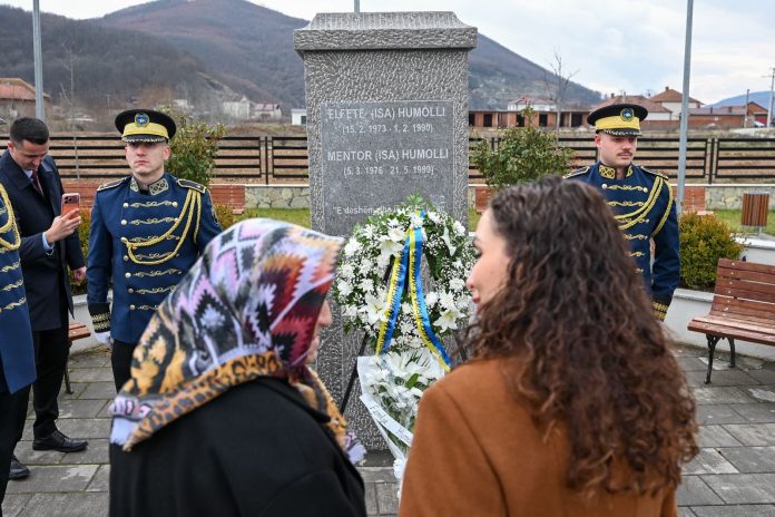 “Në moshën vetëm 16 vjeçare, Elfete Humolli u ngrit kundër shtypjes dhe dhunës së regjimit kriminal serb, duke na treguar se guximi dhe dashuria për atdheun nuk kanë çmim. Në përvjetorin e vrasjes së saj, vizituam familjen Humolli në Lupç të Poshtëm, vendosëm kurorë lulesh dhe nderuam kujtimin e vëllait, Mentorit, i cili ra dëshmor në Koshare në mars 1999. Motra dhe vëllai u bashkuan në të njëjtën kauzë të shenjtë për lirinë e vendit”, ka shkruar Osmani në Facebook.