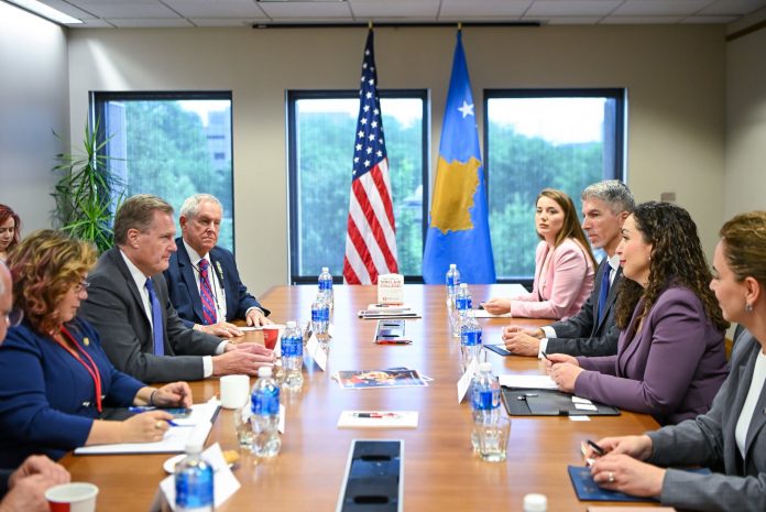 Presidentja e Kosovës, Vjosa Osmani, në një takim me delegacionin amerikan në Asamblenë Parlamentare të NATO-s, ka theksuar rëndësinë e forcimit të raporteve ndërshtetërore, sidomos në fushën e mbrojtjes dhe të zhvillimit ekonomik.