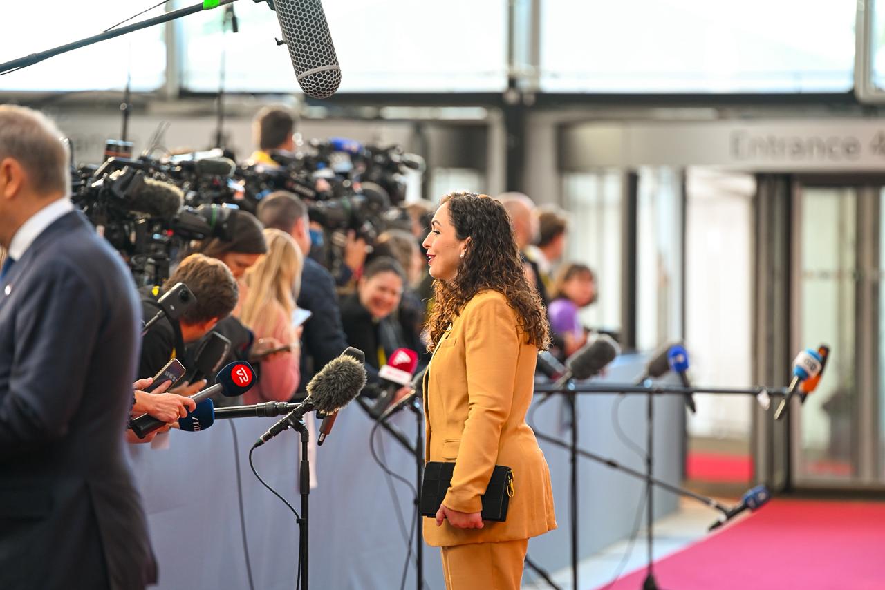 Presidentja e Kosovës, Vjosa Osmani, para hyrjes në Samitin e Liderëve të Komunitetit Politik Evropian (EPC) në Kopenhagë, ka deklaruar se Serbia e drejtuar nga Aleksandar Vuçiq po ndjek modelin e Kremlinit në raport me fqinjët.