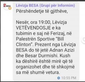 Nga atje do jenë dy përfaqësues të Lëvizjes Besa.