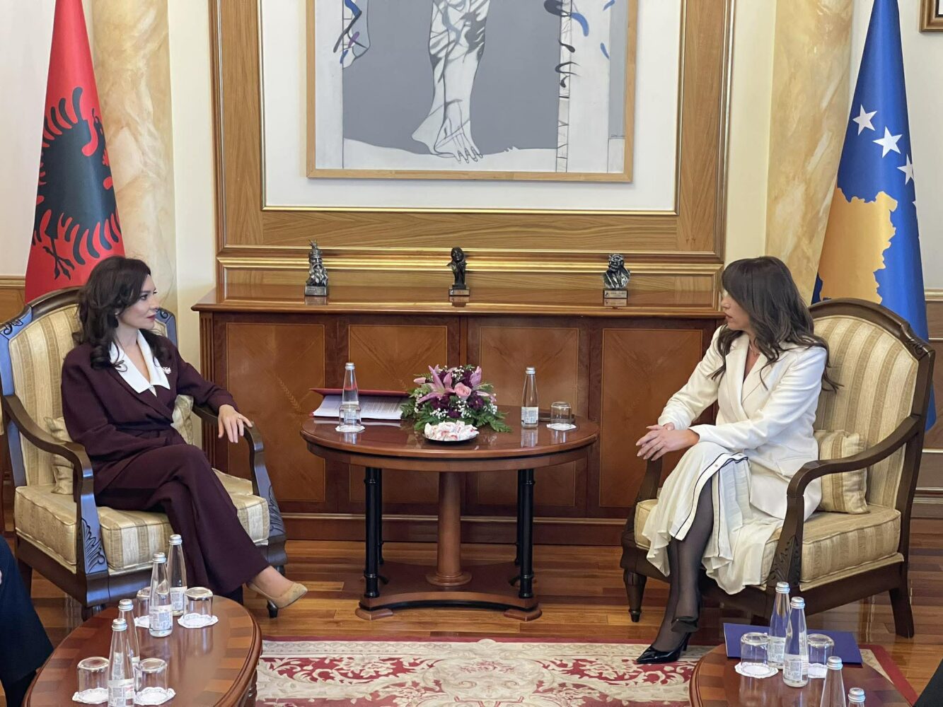 Ministrja për Evropën dhe Punët e Jashtme e Shqipërisë, Elisa Spiropali, është pritur në takim edhe nga Kryetarja e Kuvendit Albulena Haxhiu.