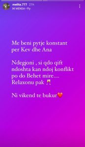 Për këtë situatë ka reaguar e ëma e Kevinit përmes një storje të postuar në Instagram, duke i informuar ndjekësit se kanë pasur konfilkt, por ka shtuar se ‘do bëhet mirë’.
