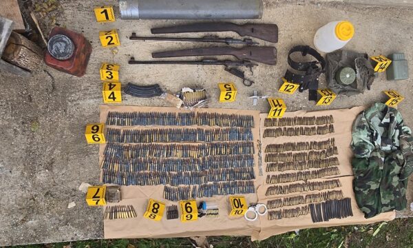 Në shtëpinë e pabanuar u gjet një armë zjarri AK-47, dy karikatorë me 27 fishekë, dy fishekë të gjuetisë dhe disa pajisje ushtarake.
