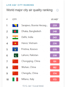 Në këtë faqe, është përfshirë edhe Prishtina, ku thuhet se kryeqyteti i Kosovës është ndër qytet me ajrin më të ndotur në botë.