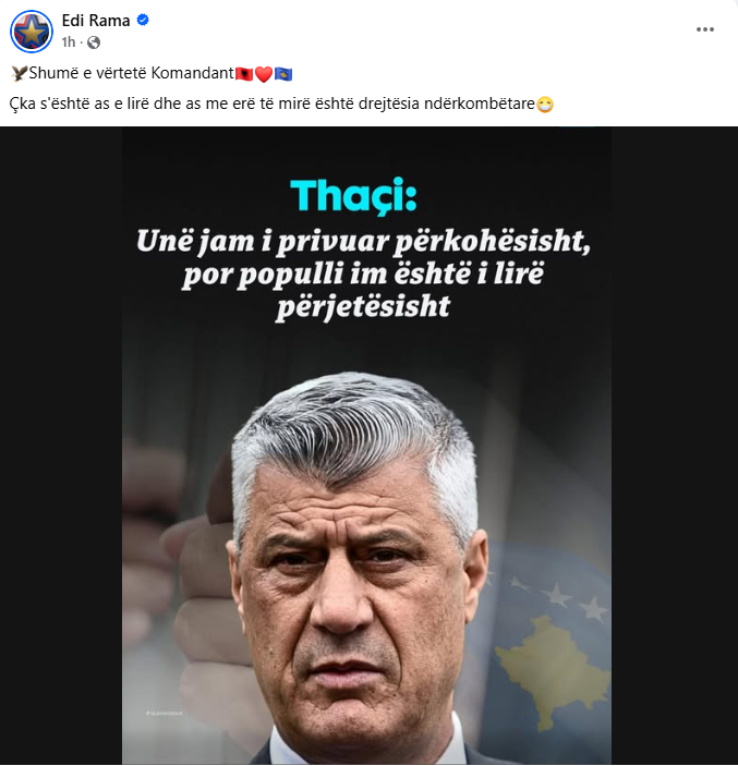 “Shumë e vërtetë Komandant. Çka s’është as e lirë dhe as me erë të mirë është drejtësia ndërkombëtare”, ka shkruar Rama.