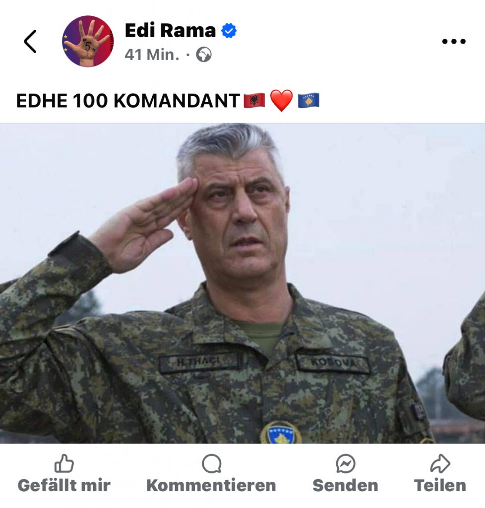 “Edhe 100 komandant”, ka shkruar Rama në Facebook, të enjten.