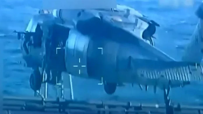 Pamjet e ndara nga Bondi tregonin një helikopter ushtarak që qëndronte pezull mbi një anije të madhe dhe trupa që zbrisnin në kuvertë duke përdorur litarë. Burra me uniformë shiheshin në klip duke lëvizur nëpër anije me armë të tërhequra.
