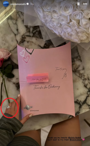 Një tjetër fotografi e postuar në “Instagram Story” e thekson akoma më shumë një unazë me diamant, që është tipike unazë propozimesh.