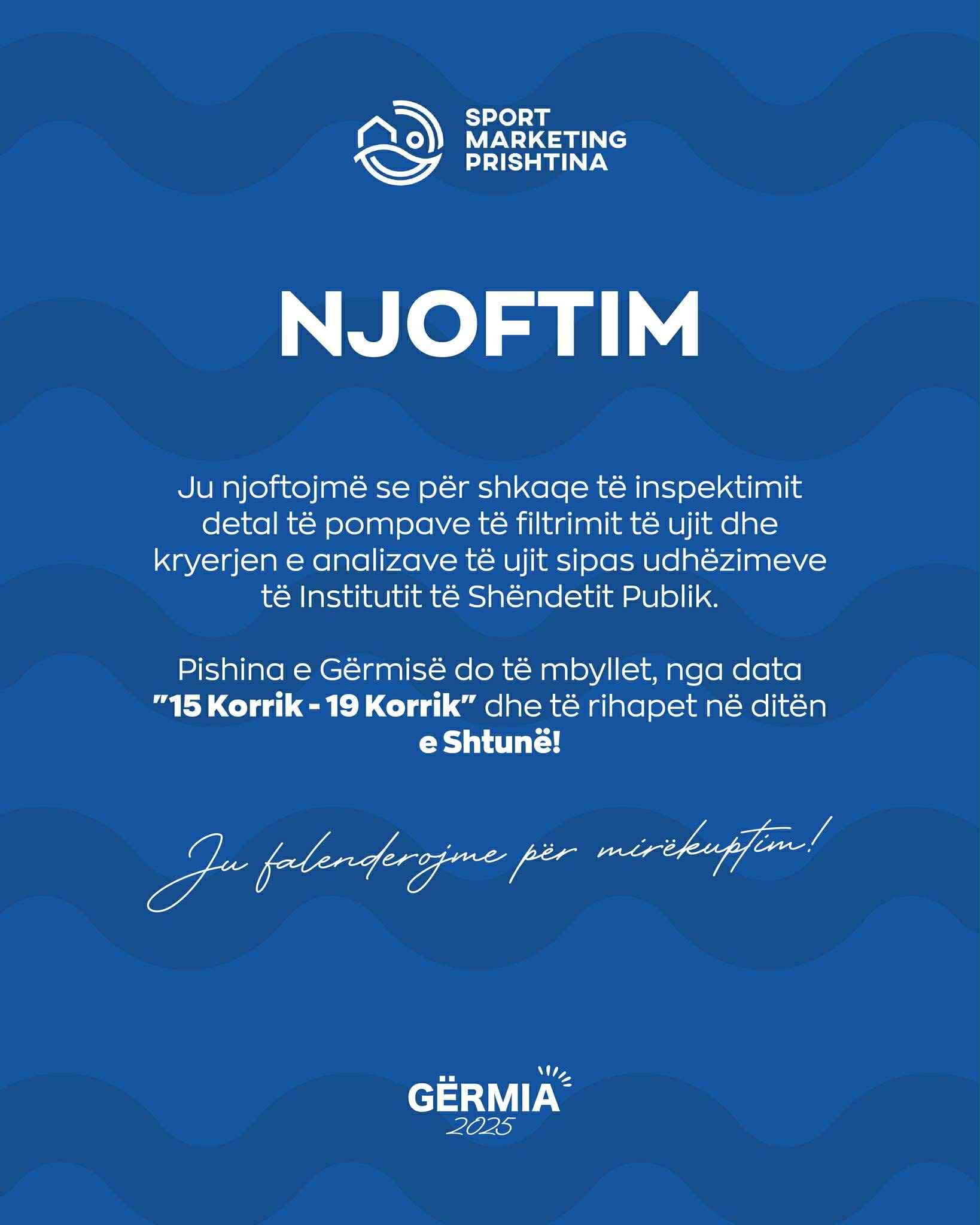 Lajmi është konfirmuar përmes një njoftimi zyrtar nga “Sport Marketing Prishtina”, ku thuhet se pas analizave të parapara, pishina do të rihapet të shtunën.