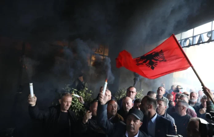 Anëtarët e OVL-UÇK-së kanë hedhur tym të zi pranë hotelit ku po mban konferencë kryetarja e Dhomave të Specializuara, Ekaterina Trendafilova.