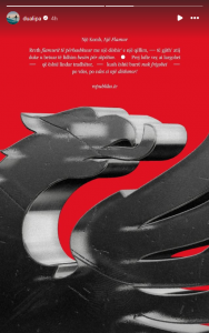 Krahas vargjeve të himnit të shenjtë, ajo gjithashtu publikoi një fotografi të flamurit kuq e zi me shqiponjën dy krenare.