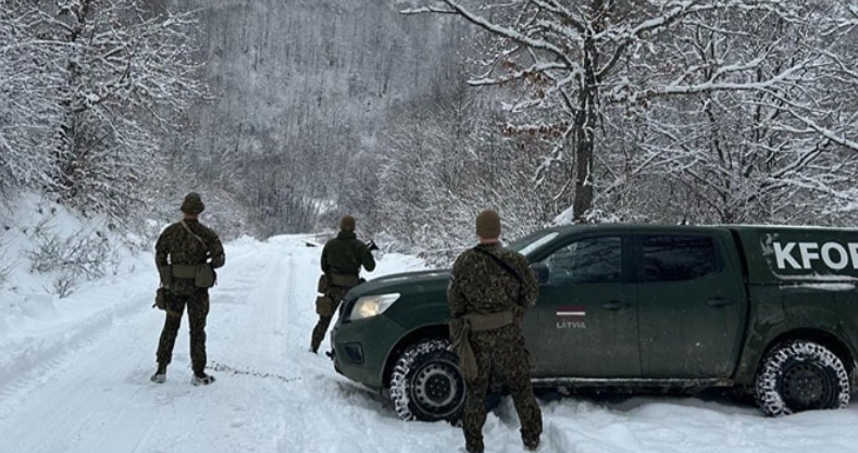 “Ushtarët letonezë dhe gjermanë të caktuar në Komandën Rajonale në Lindje të misionit të NATO-s, KFOR, kanë kryer patrullime me automjete dhe në këmbë në Zubin Potok, Kosovë”.