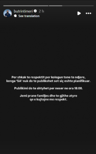 “Për shkak të respektit për kolegun tonë të ndjerë, kënga ‘SA’ nuk do të publikohet sot siç është planifikuar. Publikimi do të shtyhet për nesër në ora 18:00. Jemi pranë familjes dhe të gjithë atyre që e kujtojnë me respekt”.