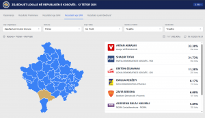 Sipas të dhënave të publikuara nga Komisioni Qendror i Zgjedhjeve, ai ka vetëm 28 vota më shumë sesa kundërkandidati i tij nga PDK-ja, kryetari aktual i Komunës, Shaqir Totaj, i cili ka marrë 566 vota (31.73%).