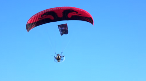 Një parashutë me flamurin kombëtar u shfaq mbi oborrin e shtëpisë, duke tërhequr menjëherë vëmendjen e të gjithë banorëve.